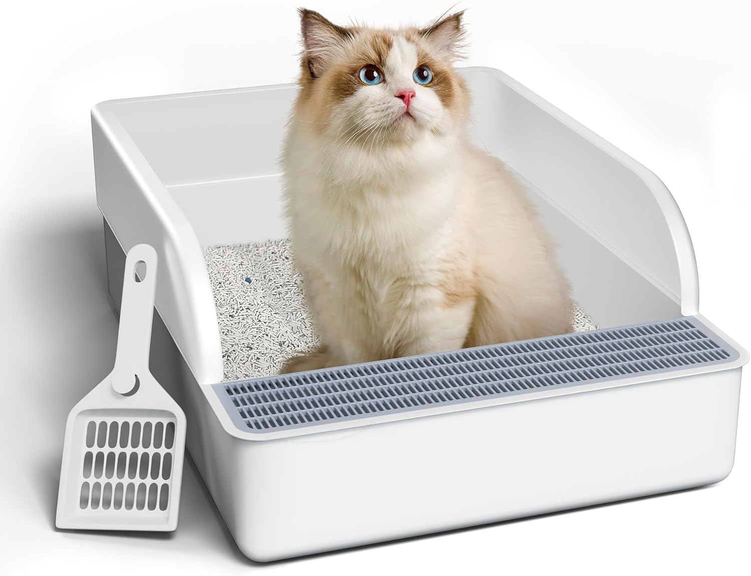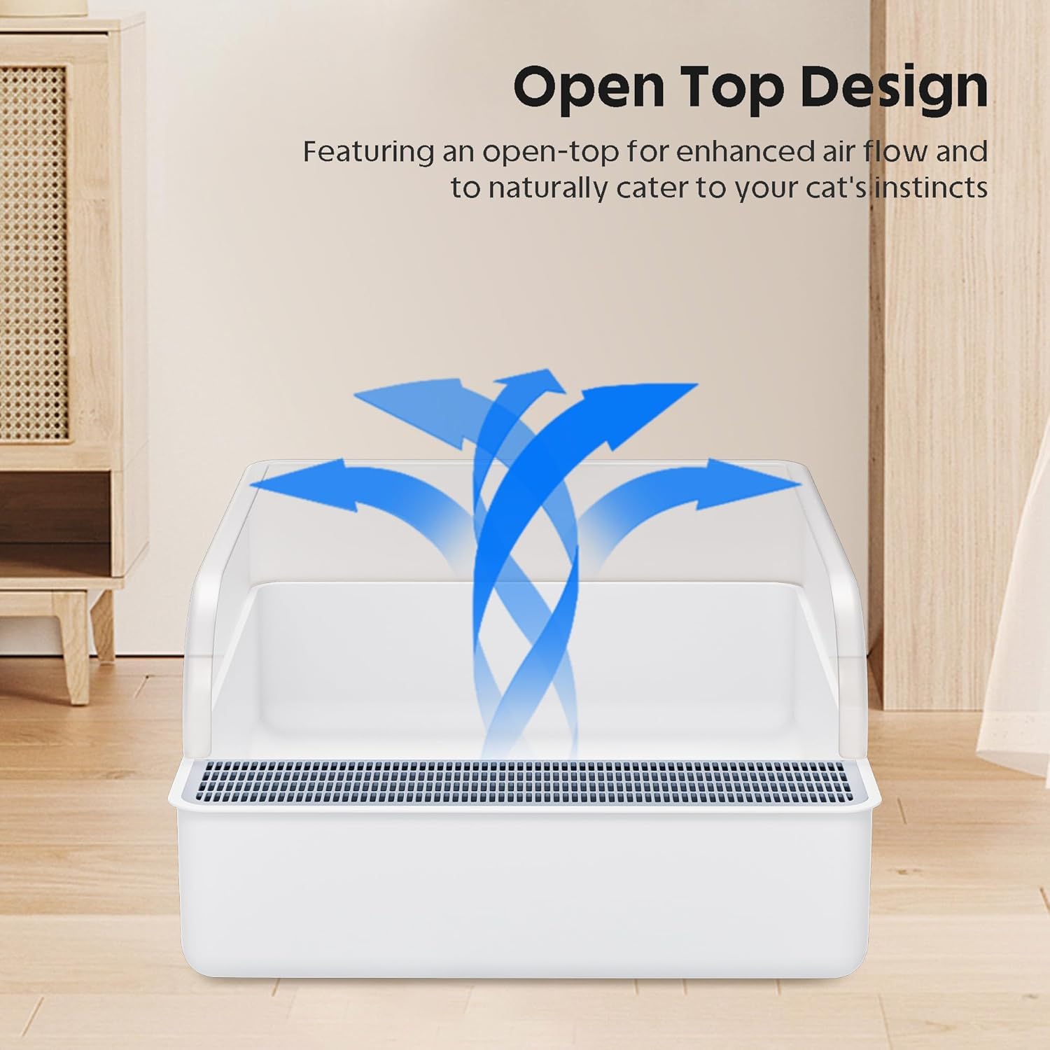 上部開放型ネコ用トイレ、ハイサイド飛沫防止、半密閉型、取り外し可能、砂漏れ防止、掃除と組み立てが簡単